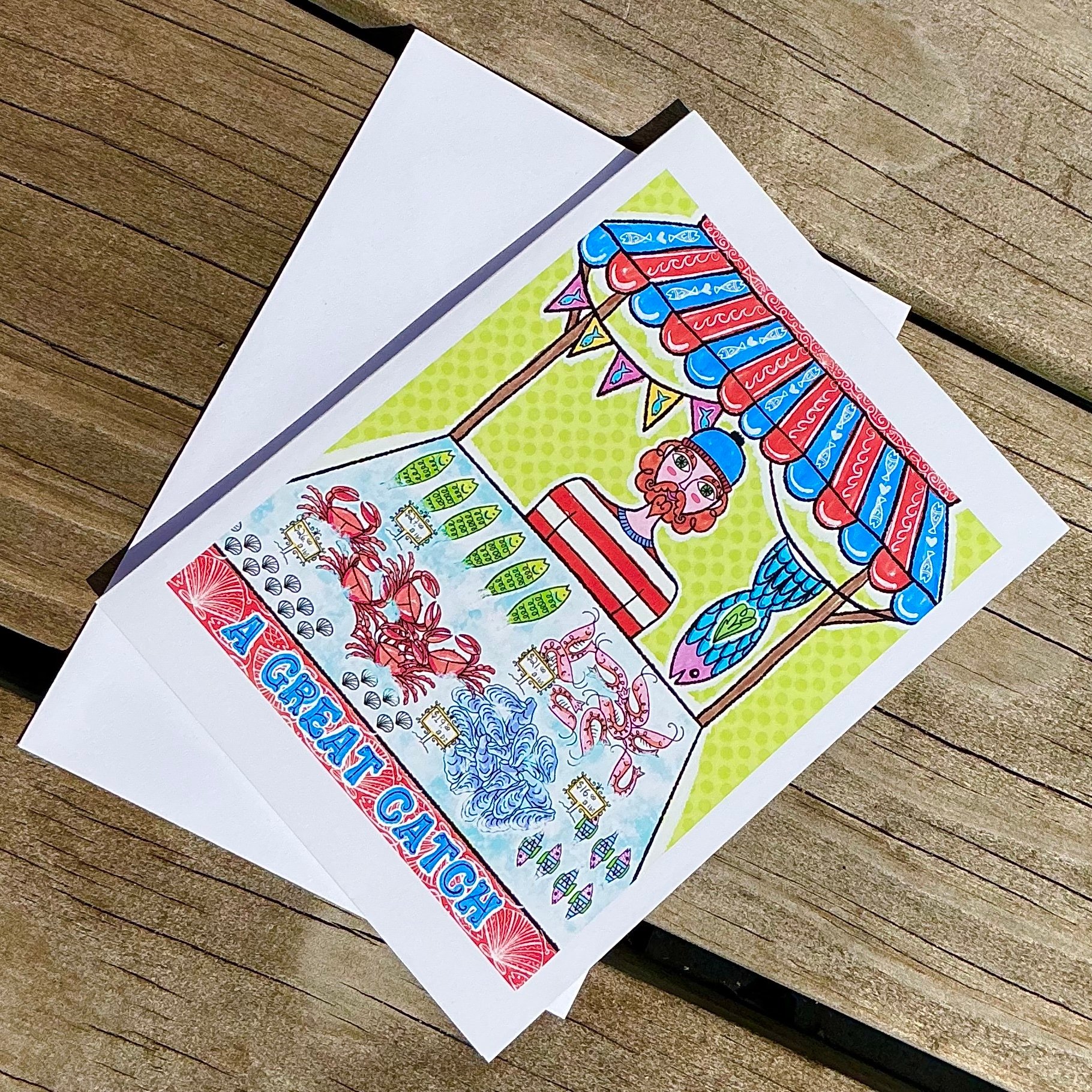Fish Market card 4” x 6”* when folded Comes with white envelope