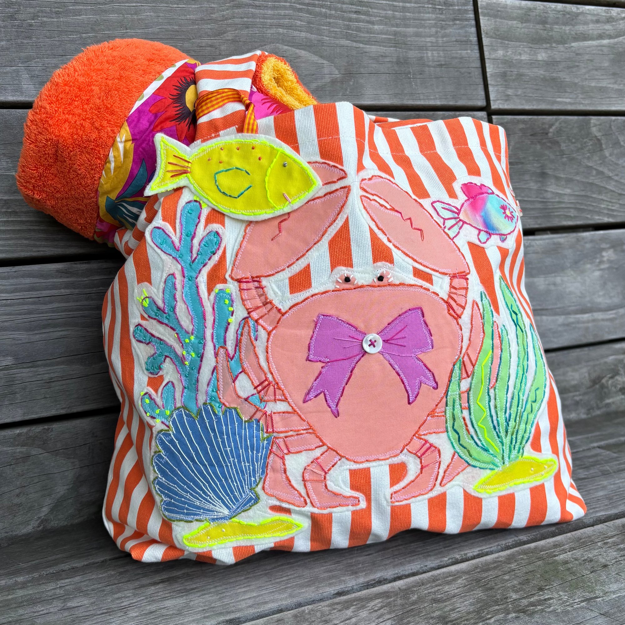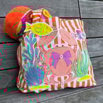 Whether you're soaking up the sun at the beach, feasting at a picnic, or embarking on a brand-new escapade, this One of a Kind Canvas Tote Bag is your trusty sidekick for toting your must-haves. Decked out with hand-appliquéd and hand-embroidered artwork plus a charming bag charm, this tote brings a splash of timeless fun to your style. With its open design and handy interior pocket, you'll keep your phone and tiny treasures in check. Made from 100% cotton canvas, this unstructured bag sports double handles for a breeze of a carry.